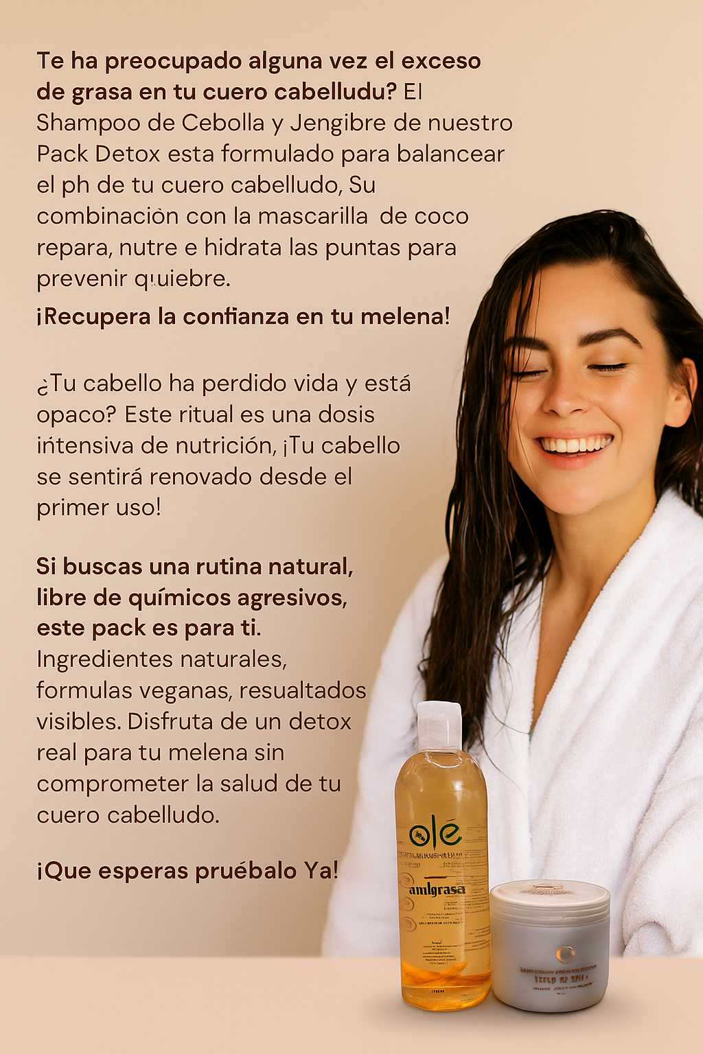 Pack Ritual Detox Capilar (Shampoo de cebolla + Mascarilla pulpa de coco)